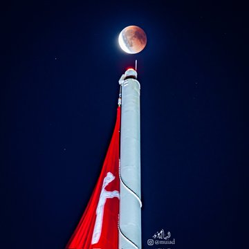 ظاهرة خسوف القمر الكلي من سماء مسقط مع سارية العلم العماني 🌓🇴🇲